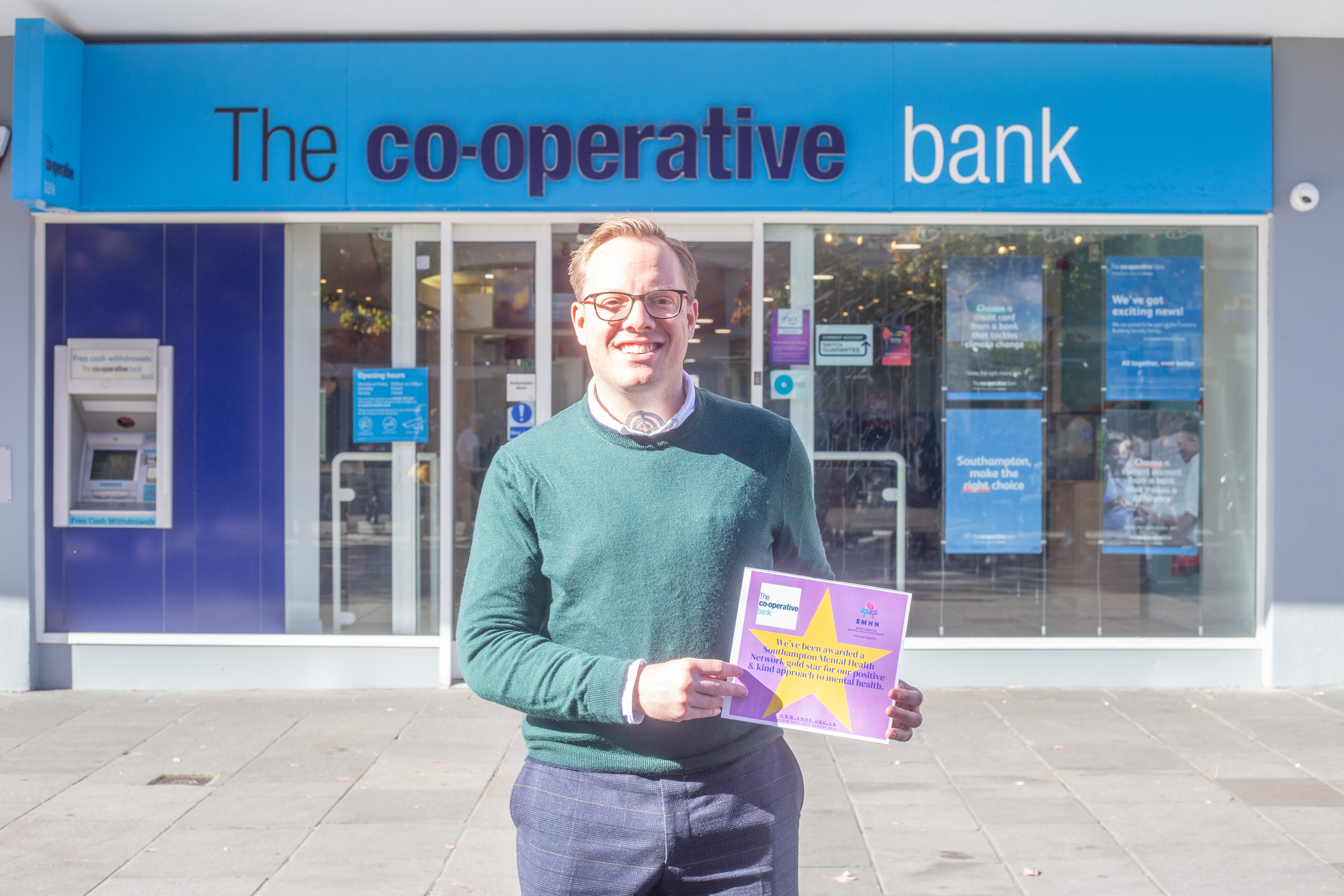 The Co-operative Bank’s city centre branch has been recognised with one of our ‘Stars for Stars’ awards in celebration of its compassionate approach to customer service and mental health awareness.